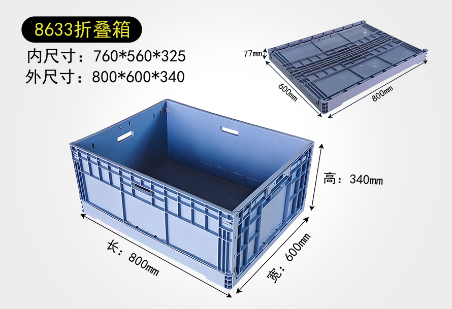| 8633折疊箱 | 760*560*325 | 800*600*340 | 灰/白/藍 | 印字/燙金 |